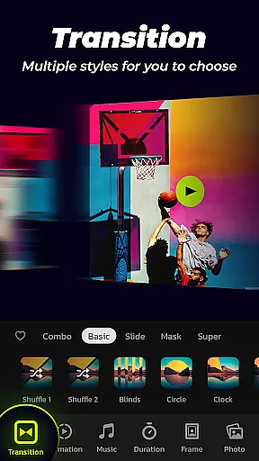 Photo Video Maker with Music - InSlide stands out by incorporating AI-powered editing features that simplify complex tasks. One notable function is its one-click transition effect which eliminates manual selection hassles. Users have access to an extensive library of transitions that automatically enhance visual storytelling without requiring advanced technical skills.