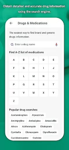 A key innovation is the integration of comprehensive drug interaction information alongside detailed medication data. The app goes beyond simple drug descriptions by providing users with practical tools such as symptom checkers, side effect information, and a drug price guide. These features are presented through an intuitive interface that organizes information alphabetically and categorically.
