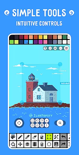 Pixel Studio PRO offers an extensive suite of creative tools that cater to both beginners and professional artists. The application supports layers, animations, and a variety of useful instruments for creating pixel art projects. With features like the Shape Tool for primitives, Gradient Tool, and custom brushes, users can explore different artistic techniques.