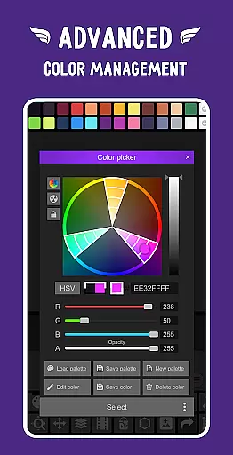 Pixel Studio PRO supports all popular formats including PNG, JPG, GIF, BMP, TGA, PSP (Pixel Studio Project), PSD (Adobe Photoshop), and EXR. For professionals, extended format support includes AI, EPS, HEIC, PDF, SVG, WEBP (cloud read-only), and PSD (cloud read/write). This wide range of compatibility ensures that users can import and export their work across different platforms and software seamlessly.