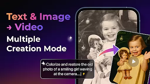 The app supports multiple creation modes including Image to Video, Text to Video, and Video Extension, each powered by AI to ensure seamless continuity. With unique effects like Old Photo Revival and AI Dance Revolution, users can push creative boundaries further than ever before.