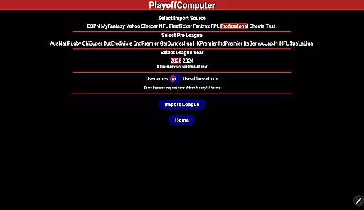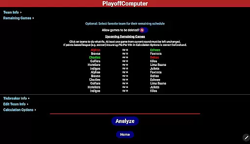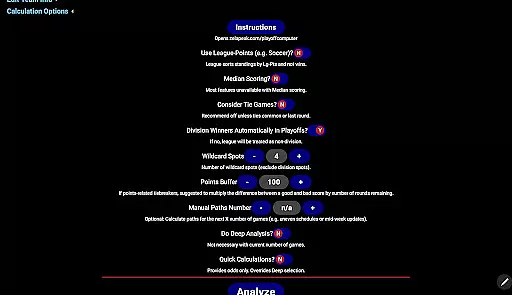 The application supports data import from popular hosting sites like ESPN, Yahoo, and Premier League, ensuring that the analysis reflects actual league conditions. By incorporating complex formulas and processes, PlayoffComputer simulates realistic outcomes based on current league data. Users can explore different what-if scenarios to understand potential paths their teams could take to clinch titles or make playoffs.