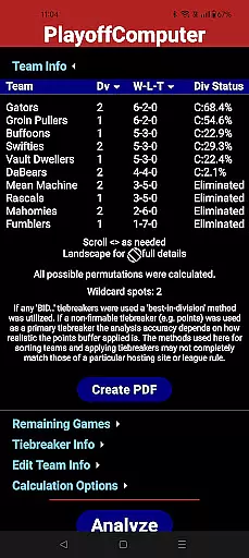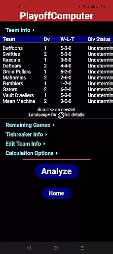 PlayoffComputer brings a unique level of realism to sports gaming by focusing on accurate playoff and title race analysis. This app is designed for enthusiasts who manage teams in fantasy, professional, and other head-to-head sport leagues. It meticulously evaluates various scenarios using real league standings, tiebreaker information, and schedules.