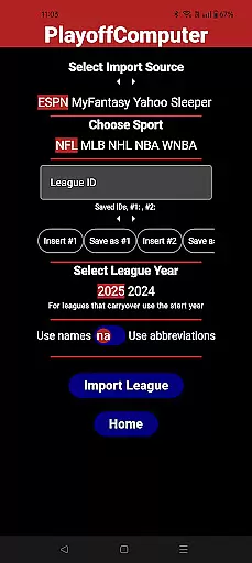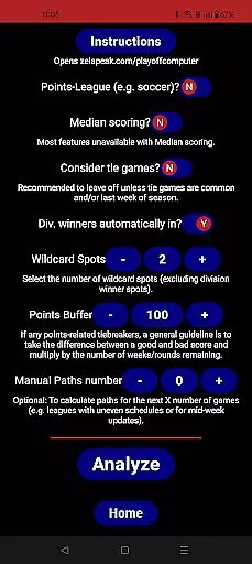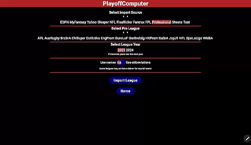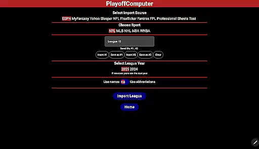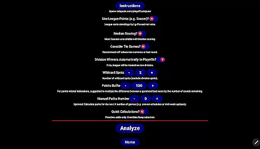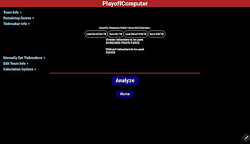 One of PlayoffComputer's standout features is its intuitive control scheme, which makes navigating through complex data and settings straightforward. Upon launching the app, users are greeted with a clean interface that logically organizes essential functions such as data import, scenario customization, and result analysis.