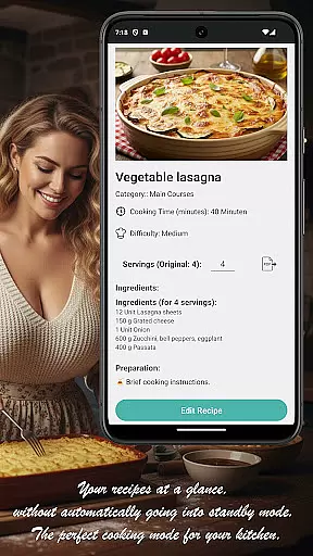 One standout feature is the automatic quantity converter, which adjusts ingredient amounts based on serving sizes, eliminating manual calculations. Additionally, the app offers a cooking mode that keeps the screen on during cooking sessions, providing uninterrupted access to recipes. Users can also export recipes as PDFs for sharing or backup purposes, ensuring privacy and security since all data remains offline.