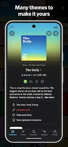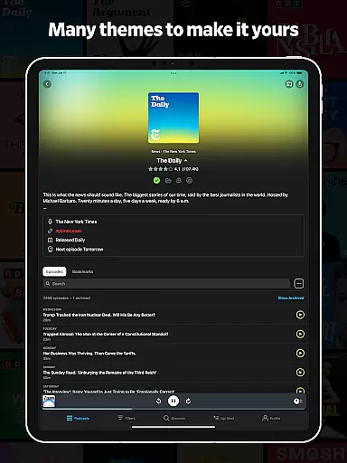 Pocket Casts stands as a premier podcast application tailored for avid listeners seeking an enriched audio experience. This app provides powerful tools for podcast discovery, organization, and playback. Users can explore hand-curated recommendations, manage their subscriptions with ease, and enjoy episodes through customizable themes that adapt to podcast artwork.