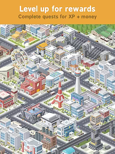 Pocket City stands out with its diverse range of features designed to enhance the city-building experience. Players can create unique cities by strategically placing different zones and special buildings, triggering fun events like block parties or managing disasters such as tornadoes. The game includes a quest system where users complete tasks to earn XP and in-game currency, which helps in leveling up and unlocking advanced structures.