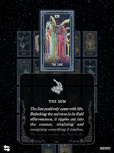 Pocket Visions Tarot stands out with its diverse features designed for an optimal user experience. The app contains two complete 78-card decks, offering users a wide range of options for their readings. Each deck comes with a full guidebook that includes reversed meanings and keywords, ensuring users have all the information they need at their fingertips.