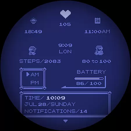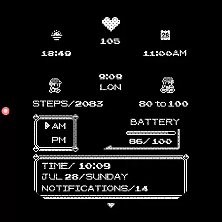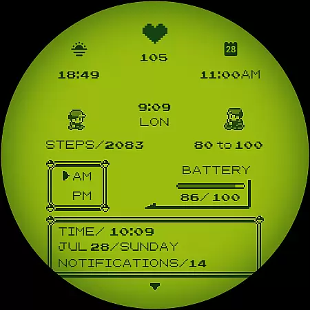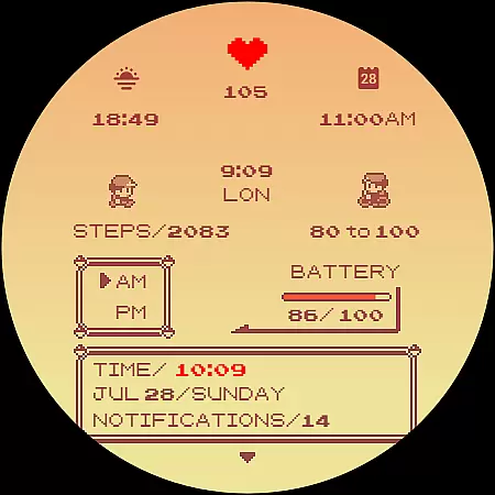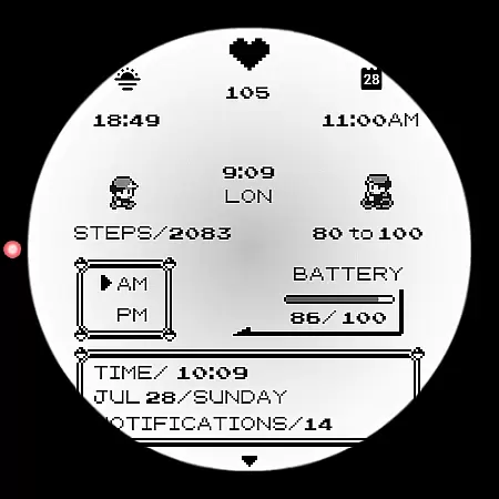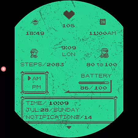 The Poke Pixel Retro Watch Face distinguishes itself through extensive customization options and attention to detail. Users can personalize their watch face with 30 distinct color schemes and numerous configuration possibilities, creating a truly unique timepiece. The interface supports both 12-hour and 24-hour formats alongside automatic date adjustments, catering to international preferences.