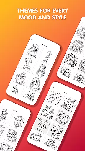 Pop Color excels in theme compatibility by offering a vast library of illustrations that cater to all age groups and artistic levels. Whether you're looking for complex designs or simple patterns, the app provides a wide selection to match your preferences.