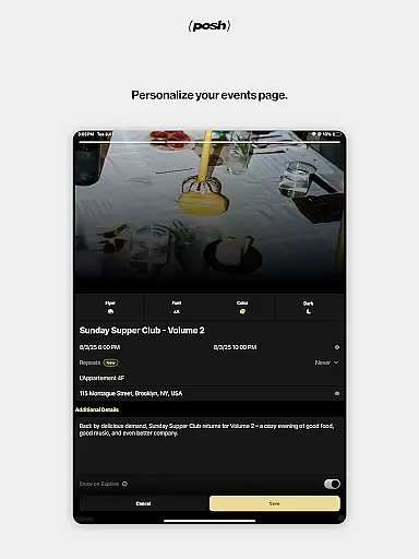 For event creators, Posh offers advanced customization options for event pages, including color schemes, imagery, and music. Organizers can also set permissions, create various ticket types, and restrict access to approved guests only. The app includes CRM and marketing tools that allow organizers to sell tickets effectively and track their marketing performance using tracking links.