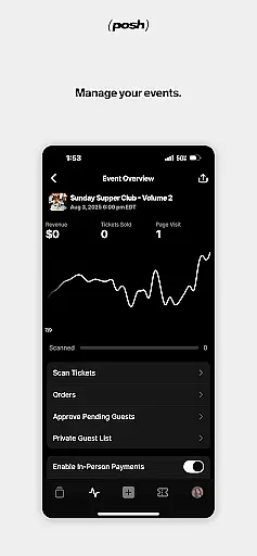 With Posh, users can easily access their purchased tickets when attending events and manage payouts if they are hosting them. This dual functionality makes Posh an invaluable tool for anyone involved in the live events ecosystem, whether as an attendee or organizer.