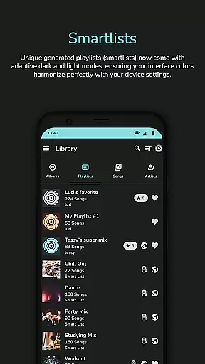 Power Ampache 2 provides unique generated playlists (called smartlists), create, edit, share your playlists, powerful offline mode, advanced search, “Spin it!” button to generate a playlist for you. It also supports Dark & light mode with adaptive interface colours, song notifications with play controls, album, artist, songs collections, media keys support, and Bluetooth functionalities.