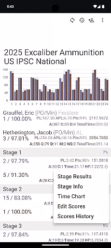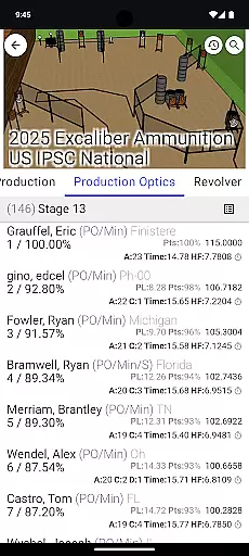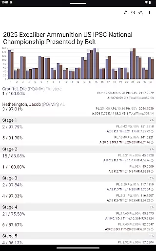 Users can view and compare multiple competitors' performances side by side, digging into every detail of match results. Advanced features include instant classification info for USPSA, Steel Challenge, IDPA, and ICORE, combined results for selected divisions, and sophisticated search and filter options. The what-if editing tools let users experiment with different scenarios to understand how changes in division, power factor, or stage times impact overall scores.