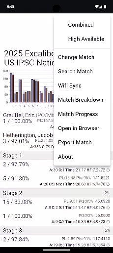 The app supports result downloads from multiple websites, syncs data over WiFi during matches, and offers offline access to previously loaded match results. With advanced search, filtering, and what-if editing features, PractiScore Competitor provides users with detailed insights into match performances and helps them strategize effectively.