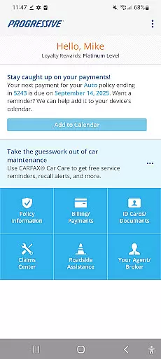 Progressive is a comprehensive financial and insurance management app that provides users with seamless access to their insurance policies and related services. With this app, you can easily view your policy details, manage payments, and handle claims from your mobile device. The app offers features such as viewing coverage details, paying bills, and even requesting roadside assistance.