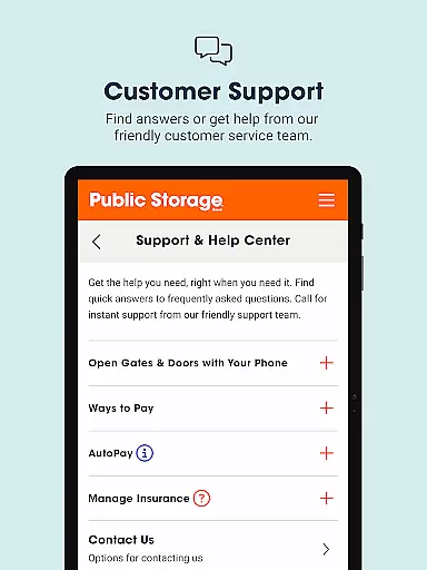 The app also facilitates swift communication with the support team, ensuring that help is readily available when required. Whether it's through instant calls or quick notes for less urgent matters, the app ensures that collaboration between clients and Public Storage remains uninterrupted.
