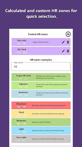 The app supports external Bluetooth or ANT+ heart rate sensors, such as those from Polar, Garmin, and Wahoo, allowing for accurate monitoring. Additionally, it offers compatibility with Wear OS, enabling standalone use on smartwatches without needing a phone connection. Users can also save their workout sessions to CSV files for future analysis or sharing.