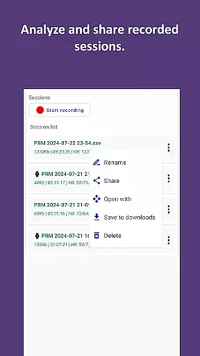 Users can save their workout sessions to CSV files, which can later be analyzed or shared. This feature enables detailed tracking of heart rate patterns across different sessions, providing insights into progress and areas needing improvement.