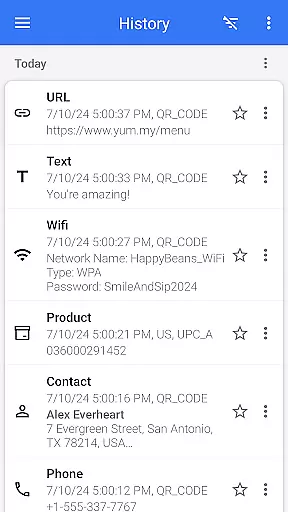 The application supports all major QR and barcode formats, including text, URLs, ISBNs, product details, contacts, calendar events, emails, locations, and Wi-Fi information. Its comprehensive functionality extends beyond scanning; users can also generate custom QR codes for various purposes, such as sharing contact information or connecting to Wi-Fi networks without entering passwords manually.