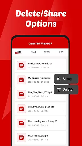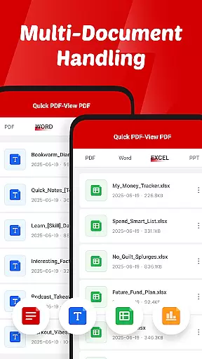 Quick PDF-View PDF is a versatile document management app designed for professionals and students alike. This application allows users to open, view, and manage PDF files with remarkable speed and ease. Additionally, it supports multiple document formats including DOC, PPT, and XLS, making it an all-in-one solution for document handling.