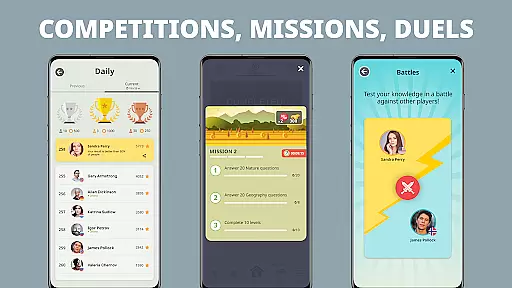 The app stands out with its educational yet relaxing gameplay, offering detailed explanations for every question. It incorporates a rewarding system where players earn coins for correct answers, which can be used to purchase hints or access other helpful features. With support for multiple languages and the ability to compete in leagues, QuizzLand creates a delightful learning environment suitable for all ages.