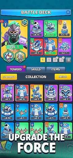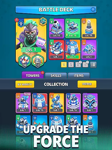 Players can merge tower cards to upgrade their attack power, ensuring that even less powerful towers can become formidable forces on the battlefield. This merging system helps maintain balance among factions by enabling strategic upgrades based on current needs.