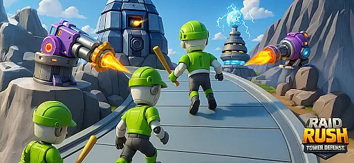 Raid Rush: Tower Defense TD offers a unique take on the classic tower defense genre, combining strategic planning with elements of luck. Players must design their defense strategy while rushing into intense battles to protect their base from enemy raids.