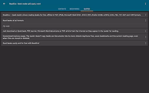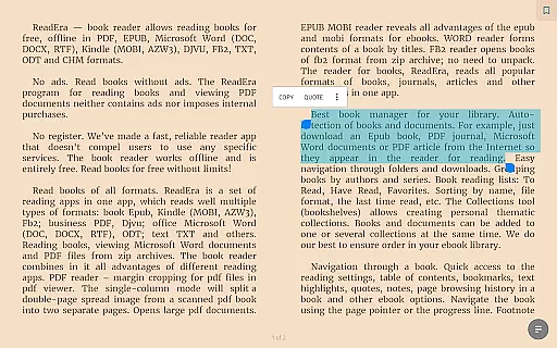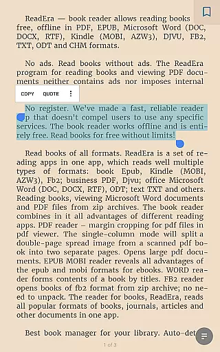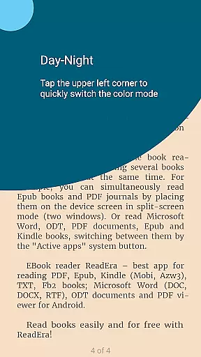Whether you're a student managing multiple textbooks or a professional handling various document types, ReadEra's multi-document mode and memory-efficient design make it an ideal choice. The ability to read several documents simultaneously in split-screen mode enhances productivity and provides flexibility for diverse reading needs.