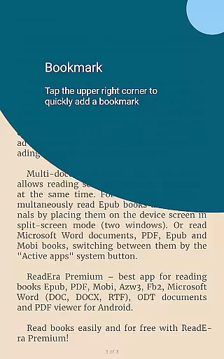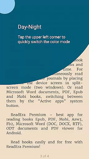 One of ReadEra Premium's standout features is its exceptional format compatibility, supporting over ten different document types including PDF, EPUB, Microsoft Word (DOC, DOCX, RTF), Kindle (MOBI, AZW3), Comic (CBZ, CBR), DJVU, FB2, TXT, ODT, and CHM formats. This comprehensive support makes it a versatile tool for managing diverse digital libraries.