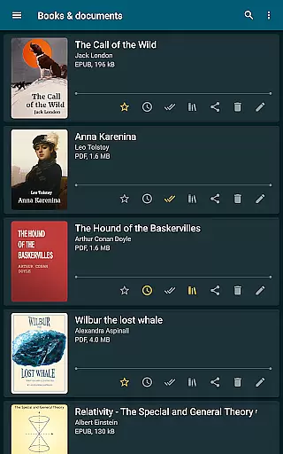 The app automatically detects all supported books on your device, making it easy to build and manage your personal library. With the ability to search by title, author, series, format, or language, users can quickly locate specific books among potentially thousands stored in their digital collection.