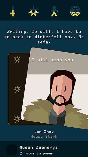 By prioritizing control fluidity and minimizing input latency, Reigns: Game of Thrones delivers an engaging experience that captures the essence of quick, decisive leadership. This design choice reinforces the game's appeal, making every swipe a meaningful step in your quest to maintain power and outlast your rivals in the unforgiving world of Westeros.