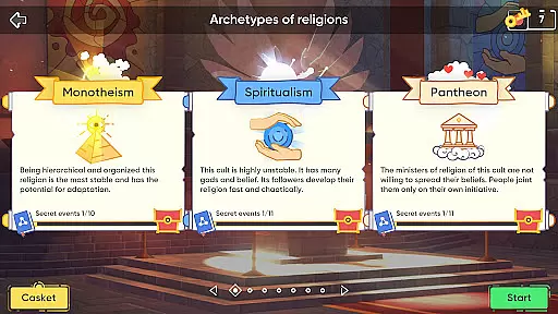 One of the standout features of Religion Inc. God Simulator is its extensive library of religious archetypes. Players can delve into monotheism, pantheon structures, shamanistic practices, and more, each offering a unique gameplay experience. With thousands of religious aspects available — and even more planned for future updates — the depth of customization is unparalleled.