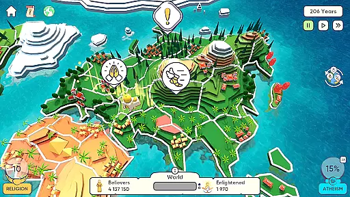 Religion Inc. God Simulator is a unique simulation game that allows players to explore and create diverse religious systems. In this strategic sandbox, users can experiment with various forms of human beliefs, ranging from monotheism to paganism. The app offers an engaging experience where players shape their own religions through thousands of customizable aspects.