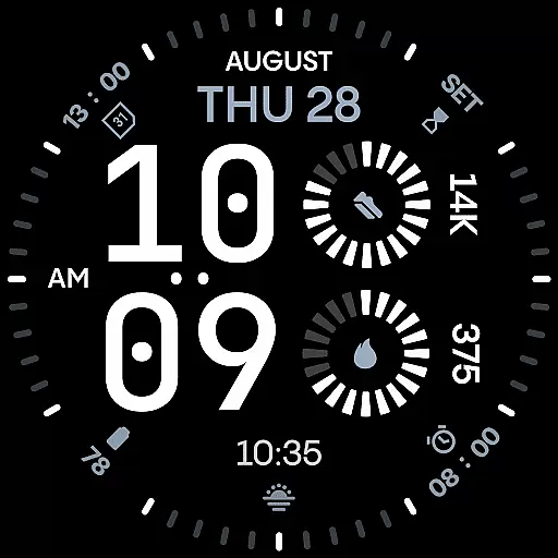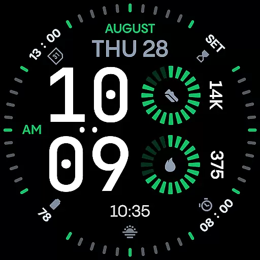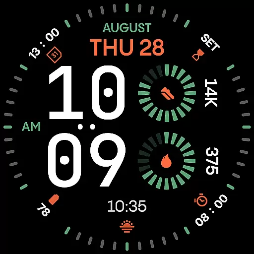 This watch face is ideal for users who value both aesthetics and functionality. Its high-contrast color schemes and radial progress indicators provide a dynamic visual experience, while battery-friendly optimizations ensure efficient energy usage. Whether you're at work or the gym, Renn Digital delivers a stylish yet practical solution tailored to your active lifestyle.