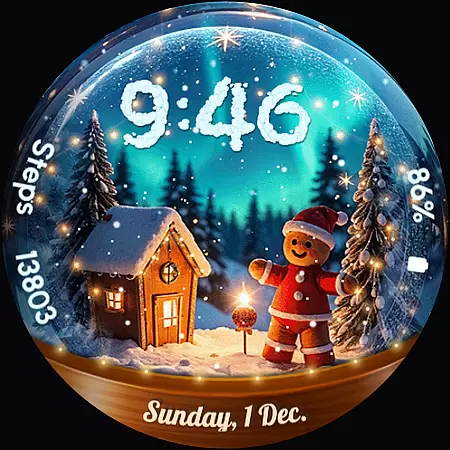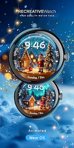 ReS56 is a festive watch face app designed to bring holiday cheer directly to your smartwatch. Featuring animated falling snow and magical spark effects, it creates an enchanting snow globe scene on your wrist. The app showcases various festive characters such as Santa Claus, reindeer, polar bear, gingerbread man, and snowman, making it perfect for the holiday season.
