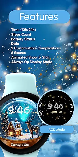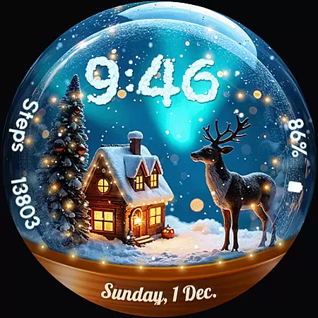 ReS56 stands out with its unique combination of festive charm and functional features. The app provides six different scenes to choose from, each filled with animated snowfall and magical spark animations that create a lively and engaging experience. Users can enjoy not only the visual delight but also practical elements like digital time, date display, battery indicator, and step counter.