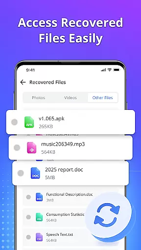 The app supports multiple file formats, ensuring that no matter what type of file you need to recover, Restore Photo - Video Recover can handle it. Whether it's recovering cherished memories in the form of photos and videos or retrieving crucial documents, this app performs its tasks swiftly and reliably. With just a single tap, users can preview their recoverable files before proceeding with the restoration process, which adds an extra layer of assurance that only the desired content will be restored.