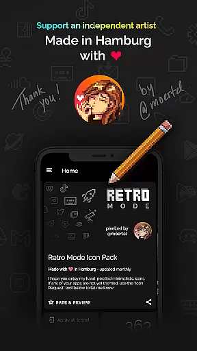Retro Mode - Icon Pack (Neon) offers a nostalgic pixel art experience with neon colors, bringing users back to the vibrant aesthetics of the 90s. This icon pack includes over 4050 meticulously crafted icons, 12 wallpapers, and 6 unique widgets that support Android 10 and above.