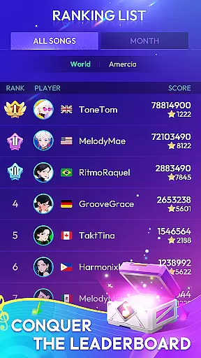The game's tap tile mechanics are designed for precision and timing, requiring players to hit notes accurately to achieve high scores. Alongside its core gameplay, Rhythm Tiles includes additional features like weekly rewards, exclusive power-ups, and new song releases, keeping the experience exciting and rewarding.