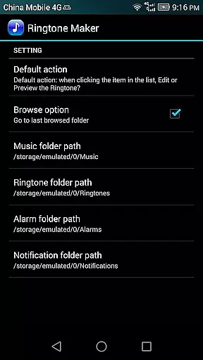 With Ringtone Maker Pro, users have the freedom to edit and save their creations in specific directories on their SD card, such as 'ringtones', 'notifications', and 'alarms'. This structured approach not only maintains order but also simplifies the process of managing and assigning audio files to different functions on the device.
