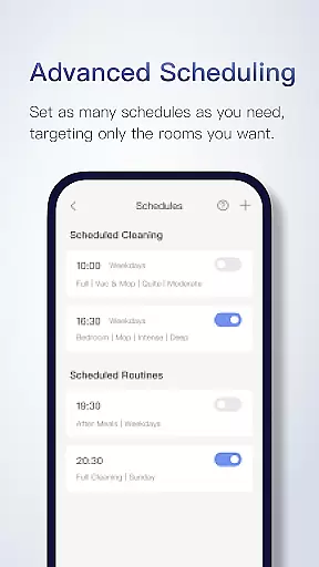 The app provides seriously smart mapping capabilities that automatically generate and divide your home's floorplan into customizable rooms. This feature allows for advanced scheduling where users can set multiple cleaning routines - be it hourly, daily, or weekly - targeting different areas like the kitchen post-breakfast or a whole-house clean when unoccupied.