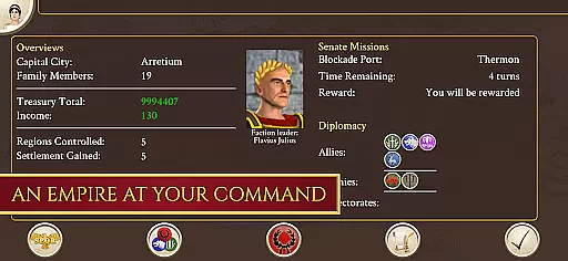 Empire management extends beyond warfare, requiring attention to economics, religion, and civil affairs. The Campaign Map serves as the central hub for these activities, offering layers of decision-making. Additionally, the game supports high-end graphics tailored for modern Android devices, delivering visually stunning battles and environments.