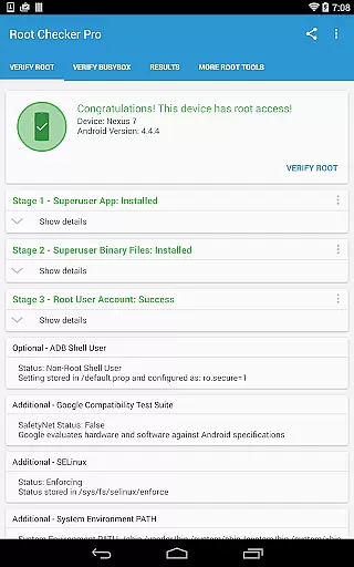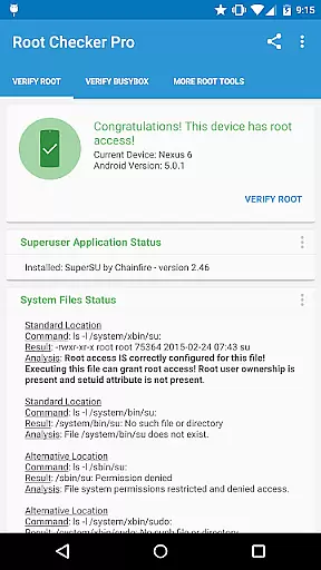 Root Checker Pro is a powerful Android tool designed to verify root access and BusyBox installation on your device. The app provides both basic and advanced users with detailed system information, including su binary locations, file permissions, SELinux status, and more. With its intuitive interface, even beginners can easily confirm whether their device has proper root access.