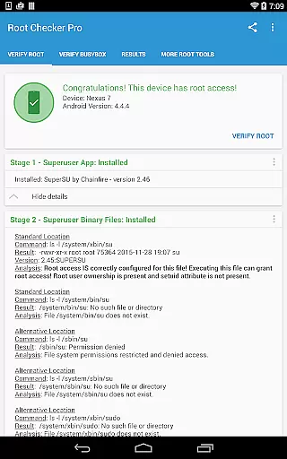 Root Checker Pro stands out with its extensive feature set tailored for root management. The application checks all standard su binary locations while verifying file permissions and ownership details. It provides complete information about Superuser applications, including installed versions and their operational status.