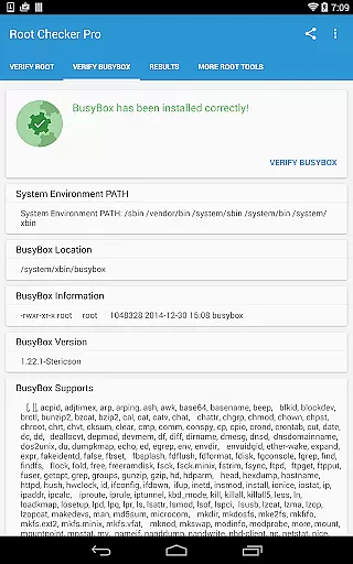For technically inclined users, the app offers advanced details about the root environment and BusyBox installation. This includes crucial information needed to troubleshoot any issues with root access or BusyBox functionality.