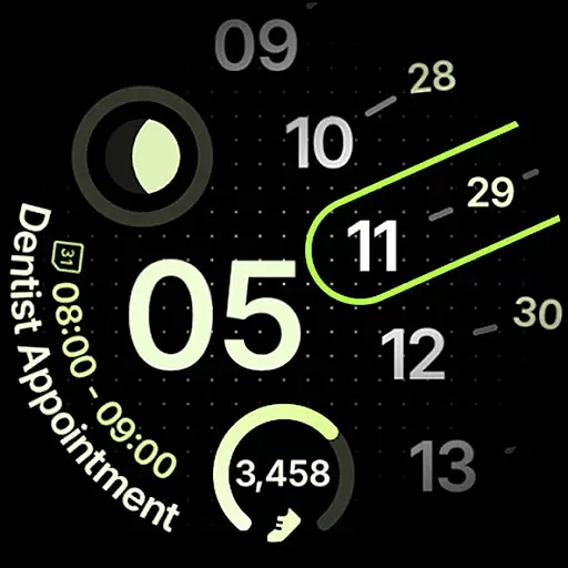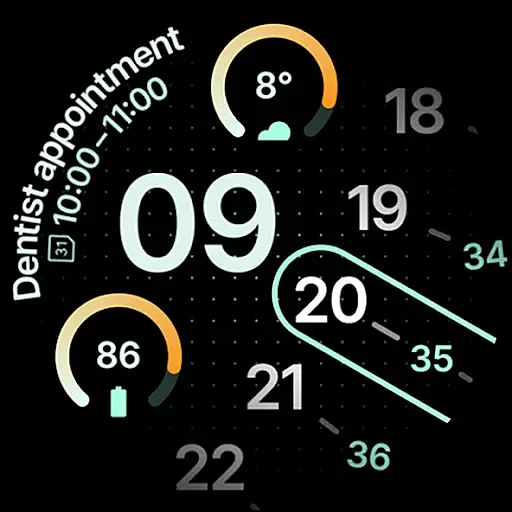 Roto Watch Face offers an array of sophisticated features tailored for tech-savvy users. Its core functionality lies in the dynamic rotation of the watch face layout every minute, providing a novel viewing experience. The inclusion of custom complication slots allows integration of essential information such as upcoming events, enhancing practicality.