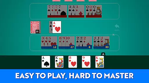 The app features large, easy-to-read cards and a clean visual design that enhances clarity. Whether you're a lifelong card game fan or new to Rummy, this version provides the perfect mix of traditional rules and modern ease of play. Enjoy rounds filled with strategy as you aim to reach 500 points and win.