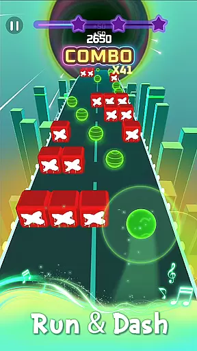 Running Roadball is an immersive music rhythm game that blends vibrant visuals with engaging gameplay. In this game, players control a running ball, navigating through a dynamic landscape of music tiles while matching beats to the rhythm of various songs. The core function revolves around tapping and holding the screen to move the ball left or right, avoiding obstacles and collecting rewards like diamonds and coins.
