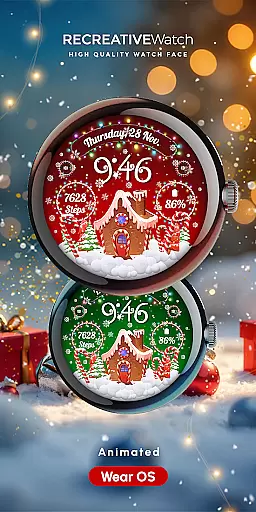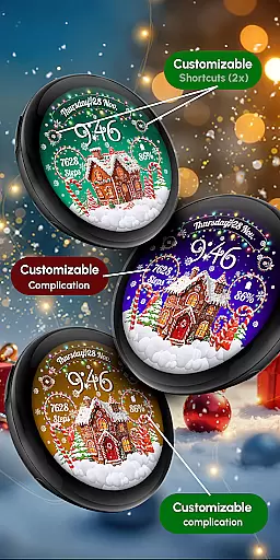 With three different scenes and color variations, users can personalize their watch face to match their style. The animated snow effect adds a festive touch, making it perfect for the holiday season.